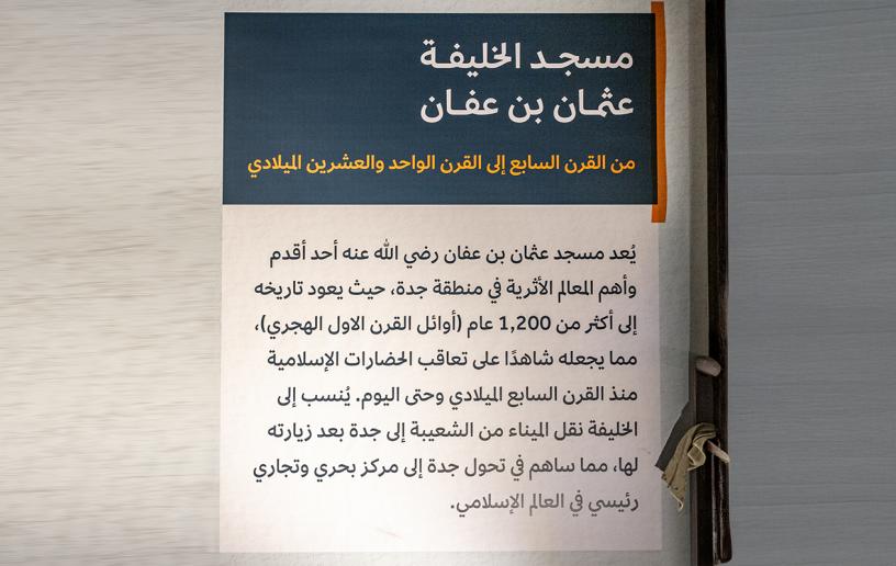 كشفت التنقيبات الأثرية من خلال إدارة الآثار في جدة التاريخية عن مسجد عثمان بن عفان، الواقع في قلب جدة التاريخية، أن كان مستخدمًا بشكل متواصل لأكثر من 1300 عام وحافظ المسجد على التصميم المحلي التقليدي، الذي يتميز بفناء مفتوح يؤدي إلى قاعة صلاة مسقوفة، إلا أن مخططه الداخلي شهد عدة تعديلات على مر القرون. وفي القرن العشرين الميلادي، أُعيد بناء المسجد بالكامل، مع الحفاظ على جميع البقايا الأثرية السابقة أسفل الهيكل الحديث.